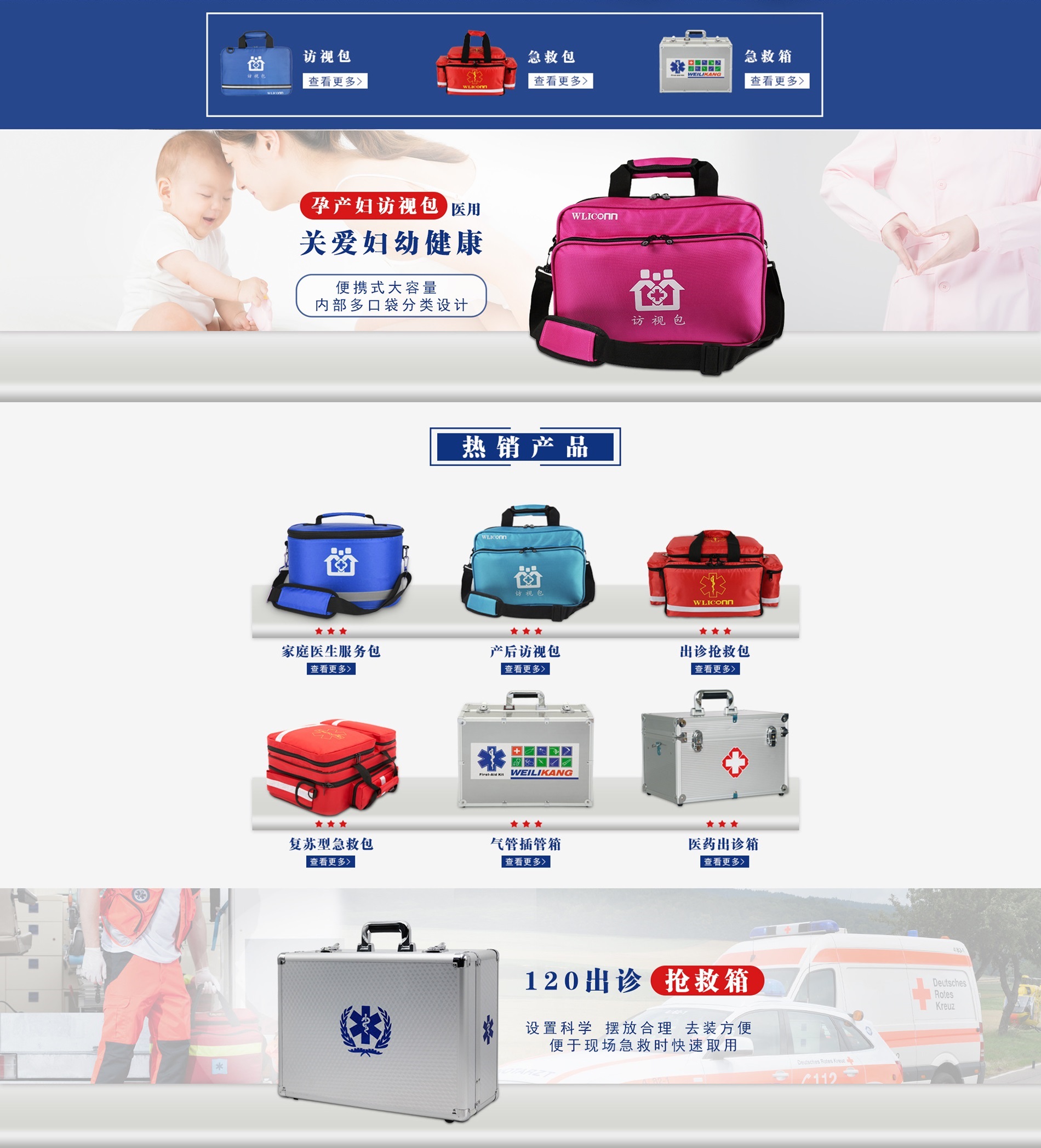 廈門維立康醫(yī)療器械有限公司成立于2016年,是一家專注于醫(yī)療院前急救領(lǐng)域和公共衛(wèi)生服務(wù)領(lǐng)域研發(fā)+生產(chǎn)+服務(wù)的綜合型企業(yè)。 公司成立以來,陸續(xù)開發(fā)出救護(hù)、社區(qū)訪視、戶外運(yùn)動、車載應(yīng)急、日常護(hù)理等五大系列,數(shù)十款急救箱、氣管插管箱、急救包、訪視包等產(chǎn)品。公司全系列產(chǎn)品,均有充足庫存,以滿足客戶的及時需求。 “急客戶之所急,想客戶之所想”是我們的服務(wù)理念。我們會不斷地提供更好的品質(zhì),更高競爭力的產(chǎn)品,滿足客戶、保障生命財(cái)產(chǎn)的安全。 “品質(zhì)鑄就品牌”是我們的經(jīng)營理念,通過開放式創(chuàng)新運(yùn)營管理,精細(xì)化的生產(chǎn)管理,構(gòu)造公司的綜合競爭力,創(chuàng)造客戶和社會的價值,從而實(shí)現(xiàn)科技醫(yī)療生態(tài)的技術(shù)價值。 “合力、求實(shí)、致遠(yuǎn)”是我們的團(tuán)隊(duì)理念。百川匯海,眾力成城,求真務(wù)實(shí),從一而至,力行達(dá)遠(yuǎn)。 [查看更多]